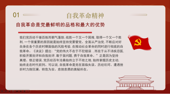 12月7日晚,智能科技学院第二党支部通过腾讯会议线上开展了“自我革新,自我完善,奋斗新征程”主题分享会,会议由严永黎和田静主持。 自我革命精神本次分享会主要分为以下几个部分:“自我革命精神”“坚持党的自我完善”“四个永葆”“坚持自我革命是我们党区别于其他任何政党的显著标志”“中国共产党永葆青春活力的强大支撑”。自我革命,通俗地讲就是“革”自己的命,对自身存在的问题“动刀”,这显然是艰难的,所以最需...