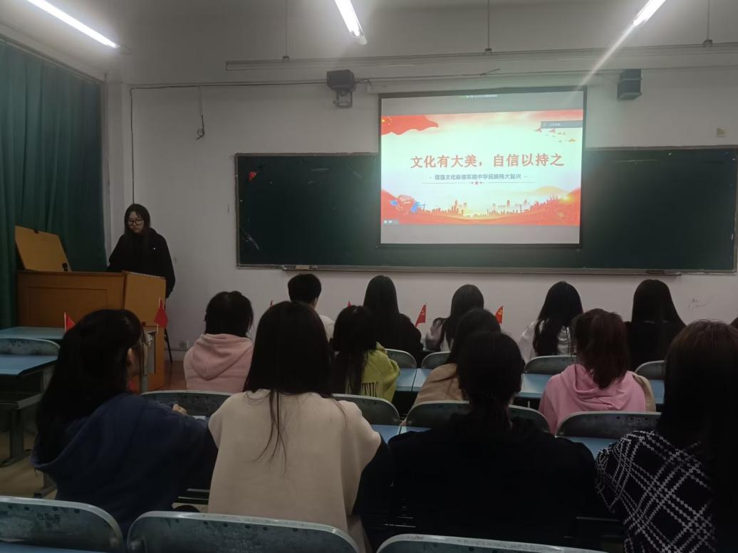 为弘扬中华优秀传统文化,让同学们深入了解和感受传统文化的魅力和智慧,增强对传统文化的认同感和自豪感,10月30日,智能科技学院第一党支部于1403开展以“文化有大美,自信以持之”为主题的红色主题教育活动。本次活动由中共预备党员陈田甜主讲,第一党支部中共党员、中共预备党员及入党积极分子参与。陈田甜主讲会议伊始,陈田甜首先引入习近平总书记在党的二十大报告中提出的文化自信相关内容。她强调了文化自信的重要性,...