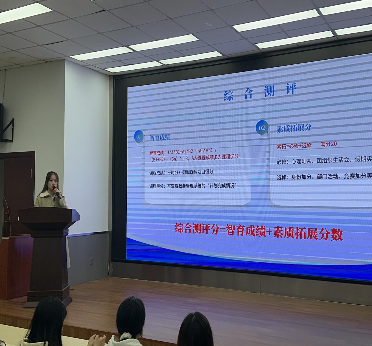 为帮助同学顺利走出大一迷茫期,更好的寻找到自己的努力的方向,10月26日在实验楼110,智能科技学院第二党支部、星火志服工作室联合开展党员先锋岗系列活动。此次分享会由中共预备党员黎馨月主讲,第二党支部全体大一新生参加。黎馨月主讲活动伊始,黎馨月详解智育成绩、综合测评的计算规则,点明其对甲等奖学金等荣誉评选的关键作用,建议新生从被动学习转向主动探索,用“番茄工作法”提升效率,并推荐了网络学习资源。竞赛方面,...