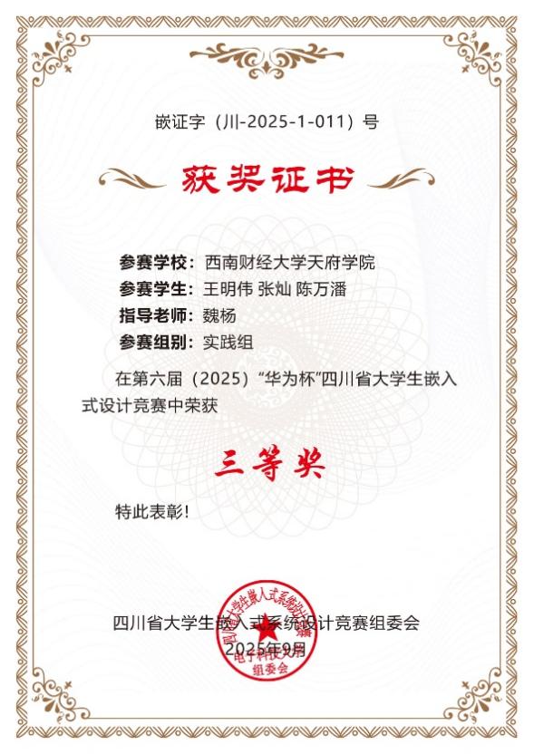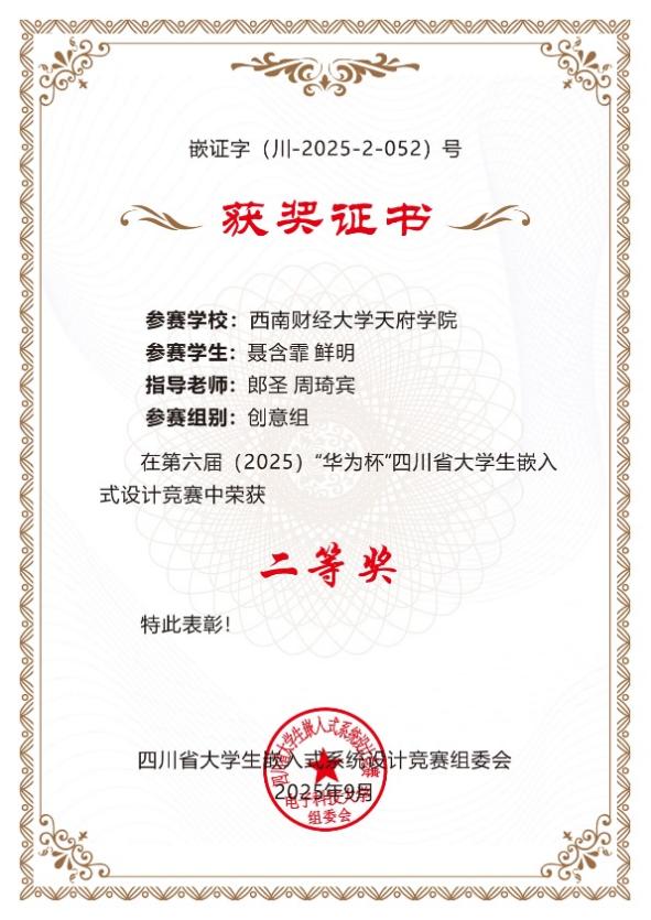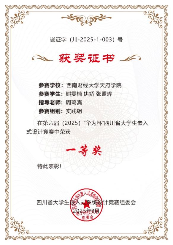 9月6日,2025年四川省大学生嵌入式设计竞赛总决赛落幕,智能科技学院共6支队伍参与决赛,经过激烈角逐,我院共斩获省级一等奖4项、省级二等奖1项、省级三等奖1项。