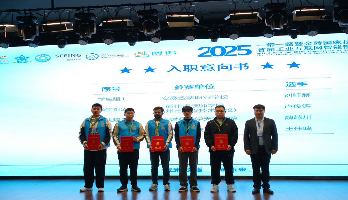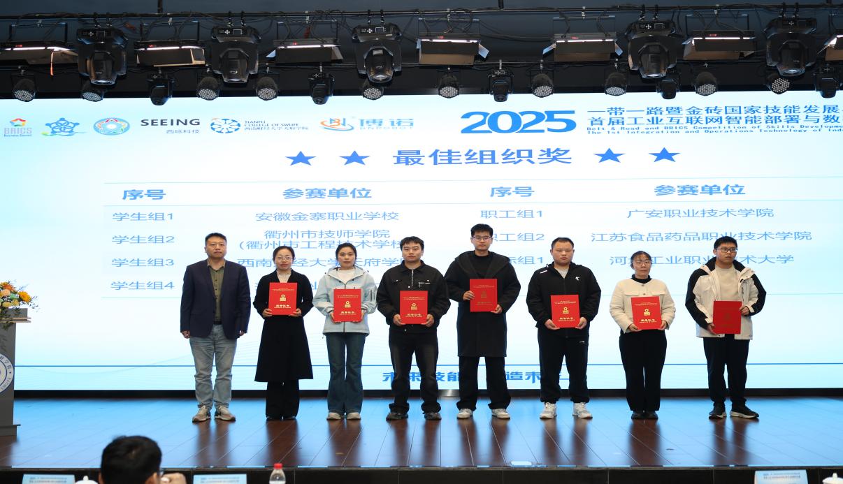 此次竞赛聚焦工业网络部署、数据采集、系统运维及数字孪生等前沿技术,旨在通过实战检验选手的综合能力,为国家选拔和储备高水平复合工业互联网技术人才。西南财经大学天府学院因组织得力、保障有力,在本次大赛中荣获“最佳组织奖”和“竞赛支持奖”,这充分肯定了学院在赛事组织、参赛指导、竞赛支持等全方面的突出贡献。