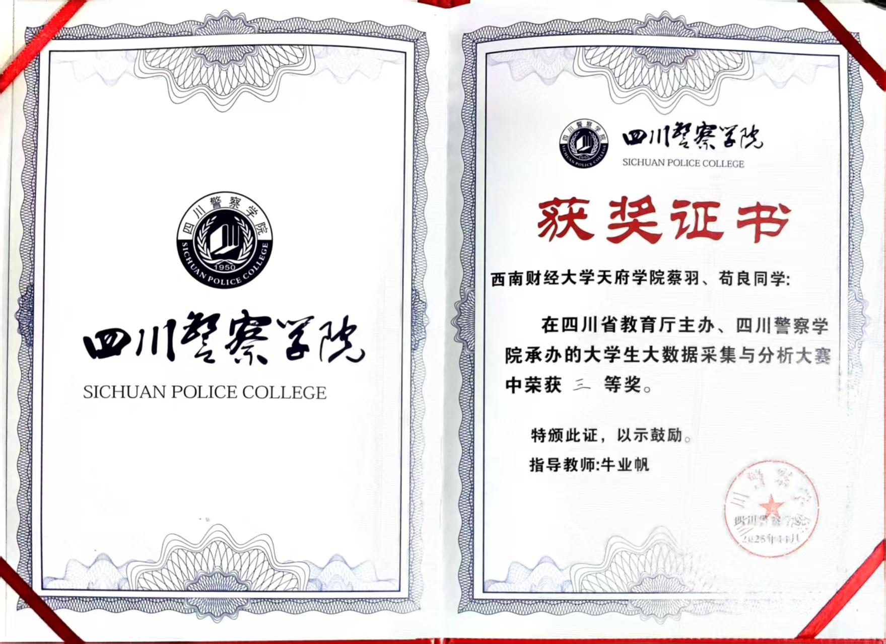经过前期激烈的初赛选拔,牛业帆老师带了的队伍成功晋级决赛,于11月22日在四川警察学院线下进行。全省参加决赛的27支战队共135名选手,从来自全国20余所高校147支队伍的线上初赛中脱颖而出,现场决出了此次大赛的团体一等奖5名、团体二等奖8名、团体三等奖14名,我校获得一支队伍三等奖。