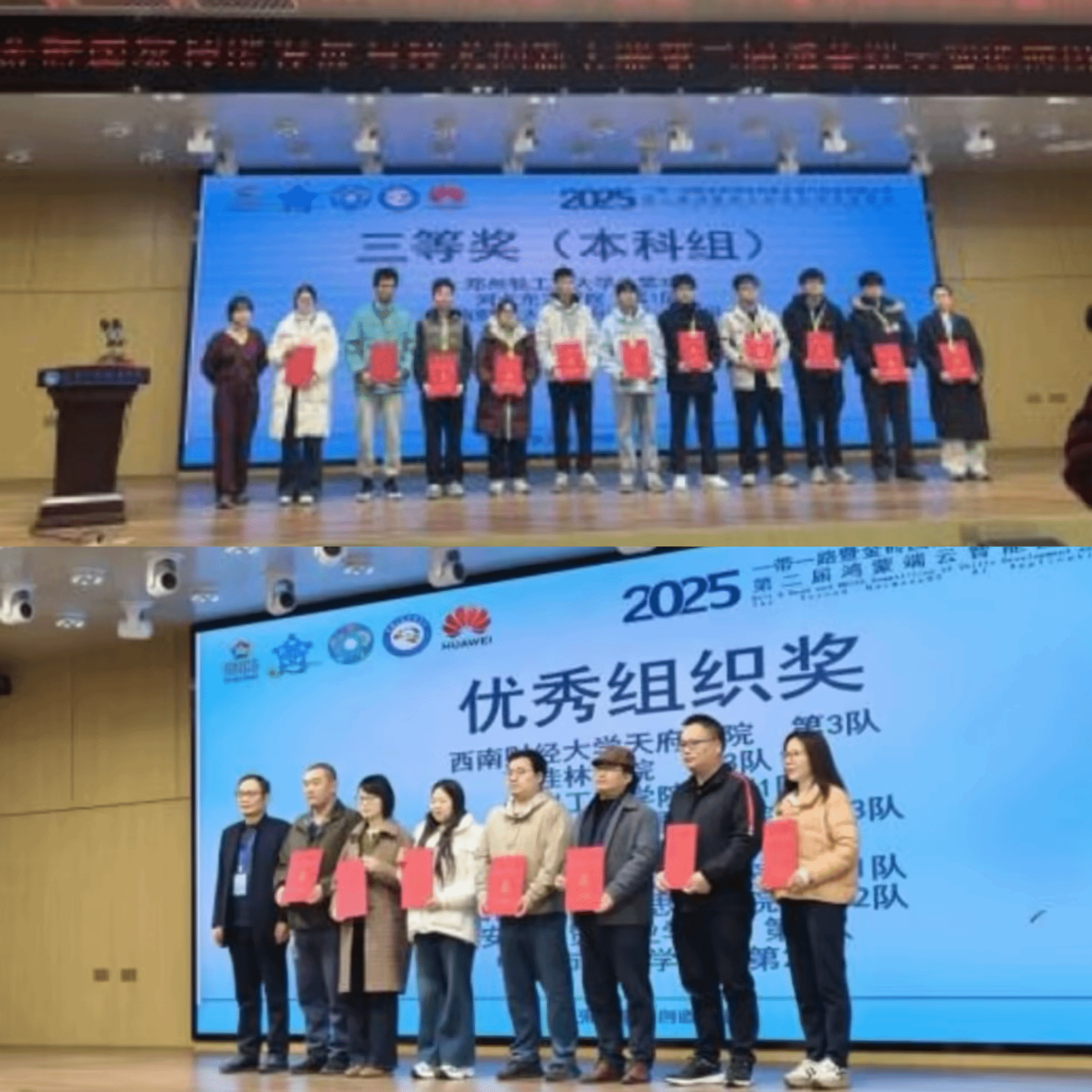 作为聚焦鸿蒙生态技术创新的高水平赛事,经过赛区预选赛角逐,来自全国46所高校的75支队伍晋级决赛,其中本科院校队伍32支。最终,大赛评选出一等奖3项、二等奖7项、三等奖10项及优秀奖12项。学院3支参赛队伍斩获二等奖1项、三等奖2项;学院荣获“优秀组织奖”;二等奖参赛队伍指导老师获评“优秀指导老师奖”,这些荣誉全方位彰显了学院在学科竞赛组织、师资队伍建设及学生实践能力培养方面的扎实成效。