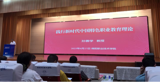 活动期间,北京外国语大学教授,教育部教育强国建设战略咨询委员会委员,博士生导师,孙善学教授,针对产教融合方面,作了 “践行新时代中国特色职业教育理论”的主题报告,深刻系统地讲述了产教融合与职业教育的相关政策引领和具体实施案例。