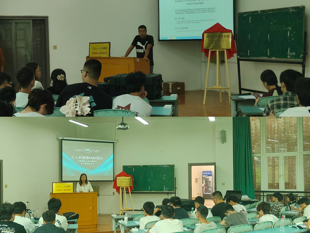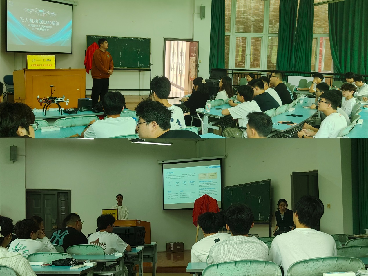10 月 10 日下午,智能科技学院在实验楼101开展“无人机执照CAAC培训”第二期开班仪式。学院分党委书记常荣、第一党支部书记罗文佳、无人机专业教师欧阳锋和丁永鹏、合作企业四川纵横自动化有限公司教员刘友科及 30 余名学员共同参加。本期培训旨在抢抓低空经济发展机遇,系统提升学员理论水平与实操能力,打造高素质无人机应用型人才。