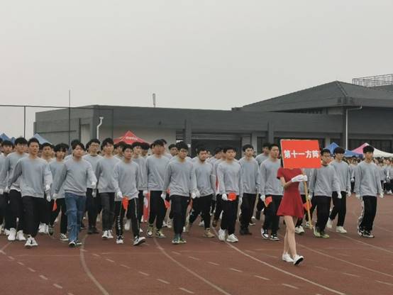 伴随着《运动员进行曲》的旋律,绵阳校区校旗方队、鲜花方队、彩旗方队、裁判方队以及各二级学院方队依次入场。入场完毕,全体肃立,奏唱《中华人民共和国国歌》。