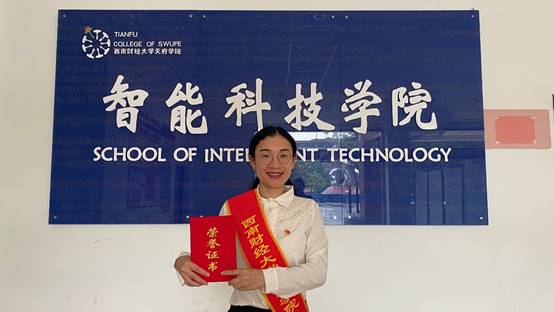 在本年度的“七一”表彰中,智能科技学院教师党员罗文佳、刘丹荣获“优秀共产党员”荣誉称号,教师党员陈倩获得“优秀党务工作者”荣誉称号。在“七一”表彰大会当天,三位教师党员庄严地走上颁奖台,接受学校“两优一先”表彰。