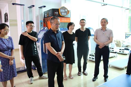 为积极响应国家推进体育教学与信息化管理,贯彻执行《高等学校体育工作基本标准》《国家学生体质健康标准》《“健康中国2030”规划纲要》等文件精神,深入产教融合,智能科技学院在学校的安排部署和鼓励下成立的智能体测项目组,着手智能体测设备的研发工作,全力为在校学生体能测试服务。2021年7月1日,学校常务副校长黄纯国、党委副书记黄琳、副校长袁勋 苟兴才 刘强、体育教研中心副主任卢鹏飞在智能科技学院院长徐鸿雁和直属党支部书记常荣的陪同下来到绵阳校区实验楼一楼视察体测项目组工作,充分肯定了智能科技学院体测项目工作。