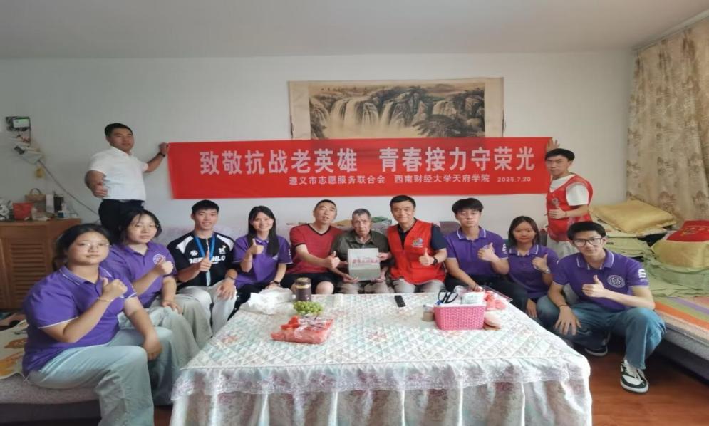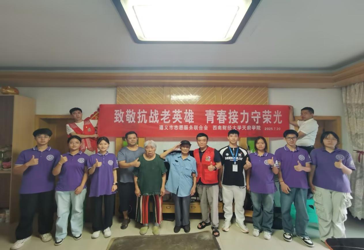 今年是中国人民抗日战争暨世界反法西斯战争胜利80周年,为深切致敬抗战英雄,传承弘扬伟大抗战精神,7月20日,智能科技学院第三党支部“领航先锋”工作室志愿者携手遵义市志愿服务联合会,联合开展走访慰问遵义抗战老兵的实践活动,以青春行动致敬历史、传承红色精神。