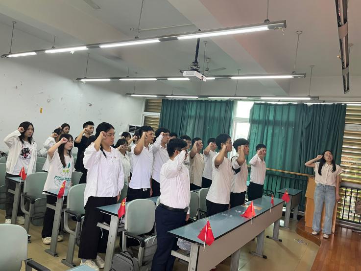 在吴雪娇的领誓下,第四党支部全体党员重温入党誓词,面向党旗,高举右拳,庄严宣读入党誓词。铿锵有力的誓言回荡教室,彰显了党员们坚守理想信念、践行初心使命的坚定决心。