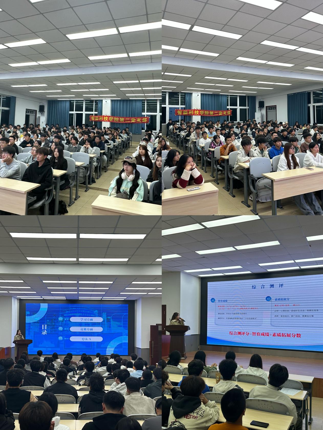 活动伊始,黎馨月详解智育成绩、综合测评的计算规则,点明其对甲等奖学金等荣誉评选的关键作用,建议新生从被动学习转向主动探索,用“番茄工作法”提升效率,并推荐了网络学习资源。竞赛方面,她指出参赛可接触前沿技术、获素拓加分,还能助力升学就业,并分类推荐“蓝桥杯”“互联网+”等适配竞赛,分享备赛需“好idea、强团队、优文档”等核心要素。最后,黎馨月叮嘱新生勇敢走出舒适区,平衡学业与生活,珍惜当下,鼓励同学们正视迷茫。同学们纷纷表示将以她为榜样,合理规划大学生活。
