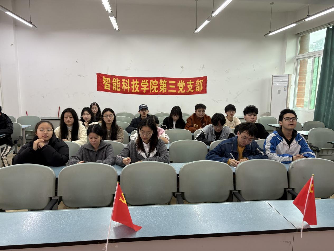 为深入学习贯彻党的二十届四中全会精神,引导大学生在“十五五”开局关键期找准时代坐标、践行使命担当,10月30日在1404教室,智能科技学院第三党支部开展“学思践悟全会精神,砥砺奋进‘十五五’新征程”主题党课。此次活动由苏文锋主讲,支部全体学生党员及入党积极分子参加。