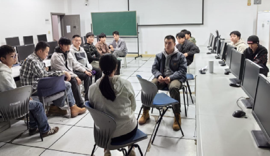 黄毅针对新一届创新班物联网专业学生开展专项学情梳理与指导工作。他先通过小组互动、面对面交流全面了解学生的知识储备、学习习惯及对专业的认知程度,进而针对部分学生存在的学习目标模糊问题,结合物联网行业发展前景与专业人才需求,引导学生树立严谨务实的学习态度,明确大学阶段的成长核心。