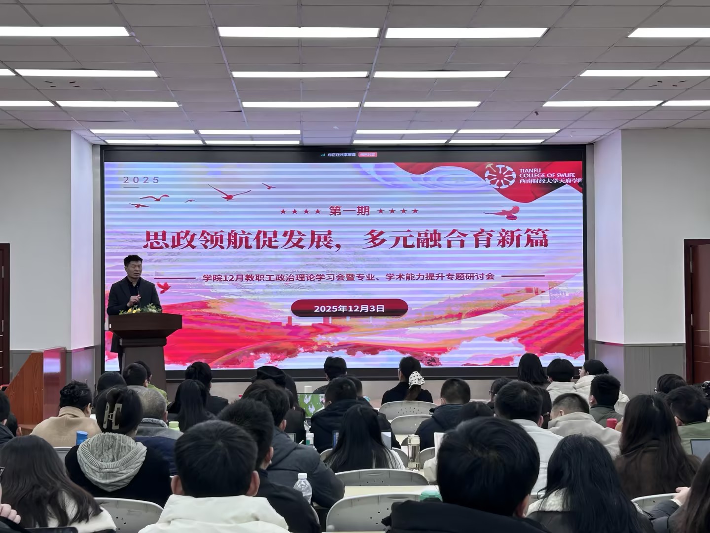 为深入贯彻落实党的二十届四中全会精神,提升教职工的思想政治素养,推进教育数字化背景下人才培养改革,着力提升专业教师人工智能赋能教学的创新意识与教学能力,全面推动学院教师学术能力提升,12月4日下午在实验楼110(成都校区线上同步),智能科技学院开展12月政治理论学习暨专业、学术能力提升专题研讨会(第一期)。本次研讨会由学院综合办主任陈倩主持,学院全体教职工参会。