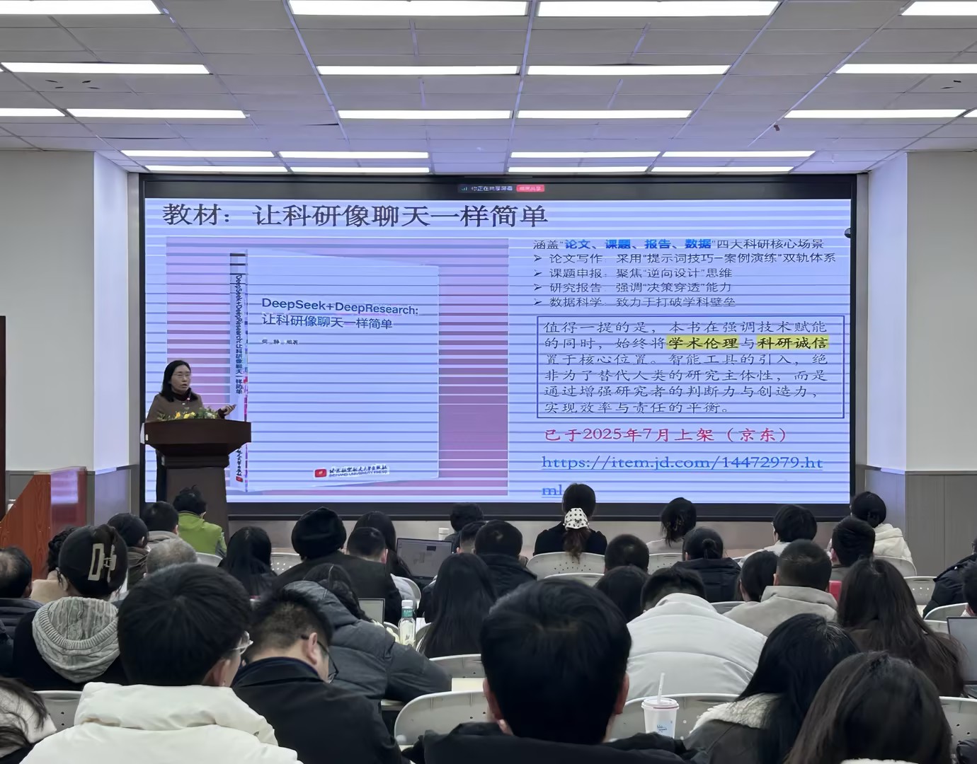 在科技创新领域,副院长陈小宁以“AI全场景公式指令多模协同决策与沙盘赋能驱动科研创新”为题,展示了人工智能技术在科研创新中的前沿应用,讨论集中于V3、R1及联网模型的对比分析,她特别强调了提示词在课题确定、文献搜寻、数据交换、论文构架、内容精炼、避免抄袭、大纲自动生成、研究背景及综述撰写等方面的运用,为教职工提供了全新的科研思路和方法论。