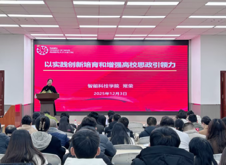 随后,学院分党委书记常荣围绕“高校思政引领力提升”作专题报告。她强调“思政引领力”的核心重点在于提升“力”,要求教育工作者适应人工智能时代的变化,统一思想,推动实践落地,实现专业发展与学院、学校战略的协同。她指出,思政工作需要在不同领域实施具体方法和案例,如专业监测工作、课程思政、实践教学基地建设等,她特别强调在新兴领域加强思政工作的必要性。
