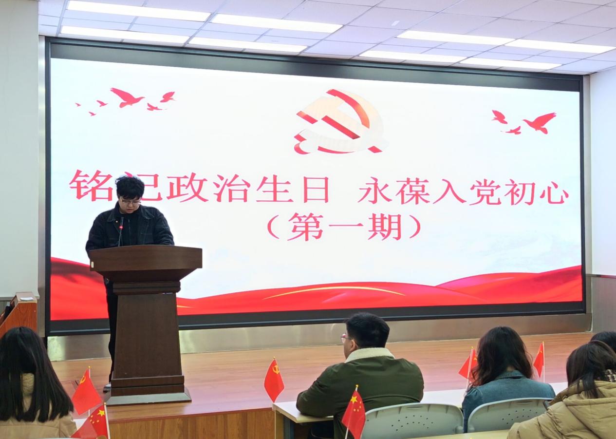为进一步增强党员的身份意识、宗旨意识和责任意识,激发党员的政治热情,提升支部的凝聚力和战斗力,12月15日中午在实验楼110,智能科技学院第四党支部开展了“铭记‘政治生日’,永葆入党初心”主题活动。本次活动由学院第四党支部宣传委员何旌铭主持,学院第四党支部书记吴雪娇、组织委员刘柯含、纪检委员黄彩霞,以及支部党员和预备党员齐聚一堂,共同度过了一个庄严而温馨的“政治生日”。