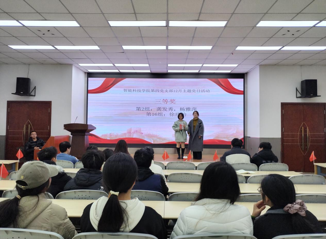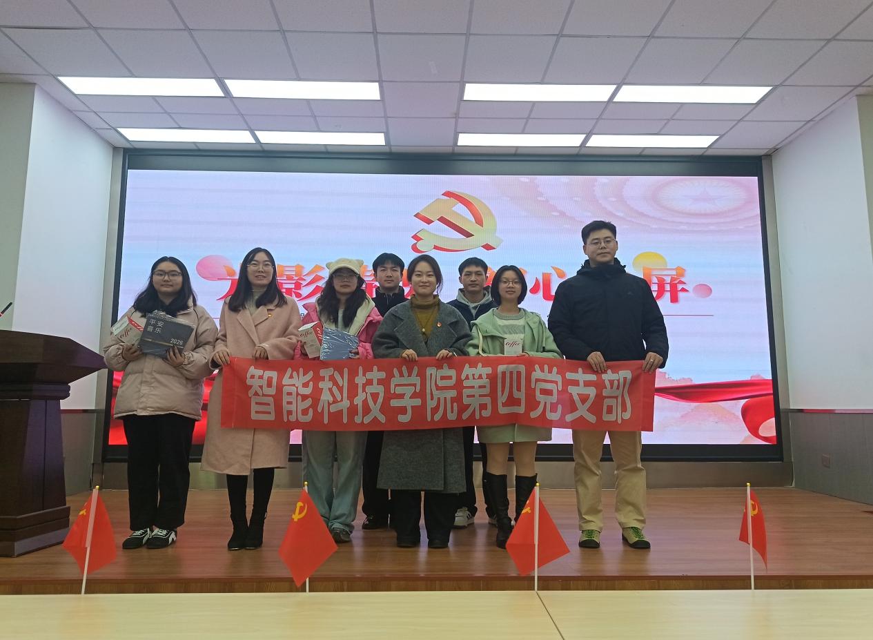 为深入学习贯彻党的创新理论,创新党组织活动形式,丰富党员教育载体,引导广大党员、青年学子从优秀影视作品中汲取精神力量、筑牢信仰根基,12月18日,智能科技学院第四党支部在实验楼110开展“光影铸魂,初心映屏”视频剪辑比赛的主题党日活动。本次活动由学院第四党支部宣传部干事陈智羽浩主持,学院第四党支部书记吴雪娇、宣传委员何旌铭、组织委员刘柯含,以及参加本次投稿的第四党支部同学参加,大家齐聚一堂共同走进一场思想与视觉交织、初心与光影共鸣的精神盛宴。