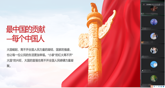 为进一步了解新中国的发展历程,坚定支部同志们的红色信仰,10月15日,智能科技学院第三党支部在腾讯会议开展“我和我的祖国”的主题分享会。冯永康主持,支部全体党员、预备党员、积极分子参会。