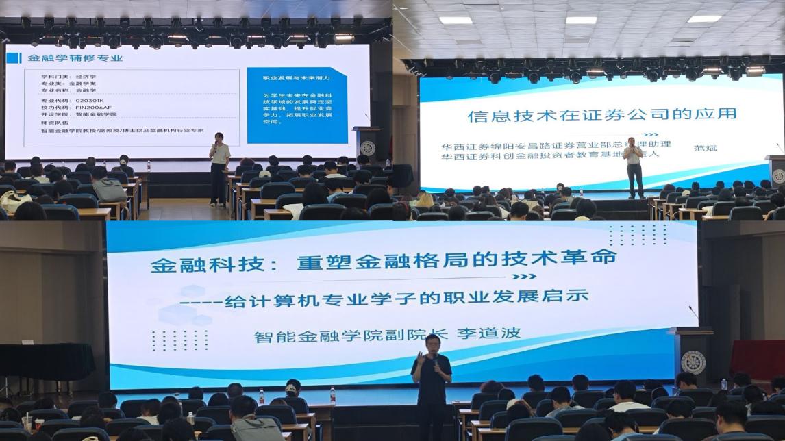 接着,李道波强调了计算机专业学生辅修金融学的巨大价值。在国家金融科技战略推动下,兼具技术与金融知识的复合型人才极为紧缺,发展前景广阔。该第二专业由智能金融学院开设,聚焦数据分析与人工智能在金融领域的应用,采用灵活混合教学模式,还有证券、银行等行业资深导师授课,助力学生构建金融科技核心竞争力,拓宽就业层次与发展空间。