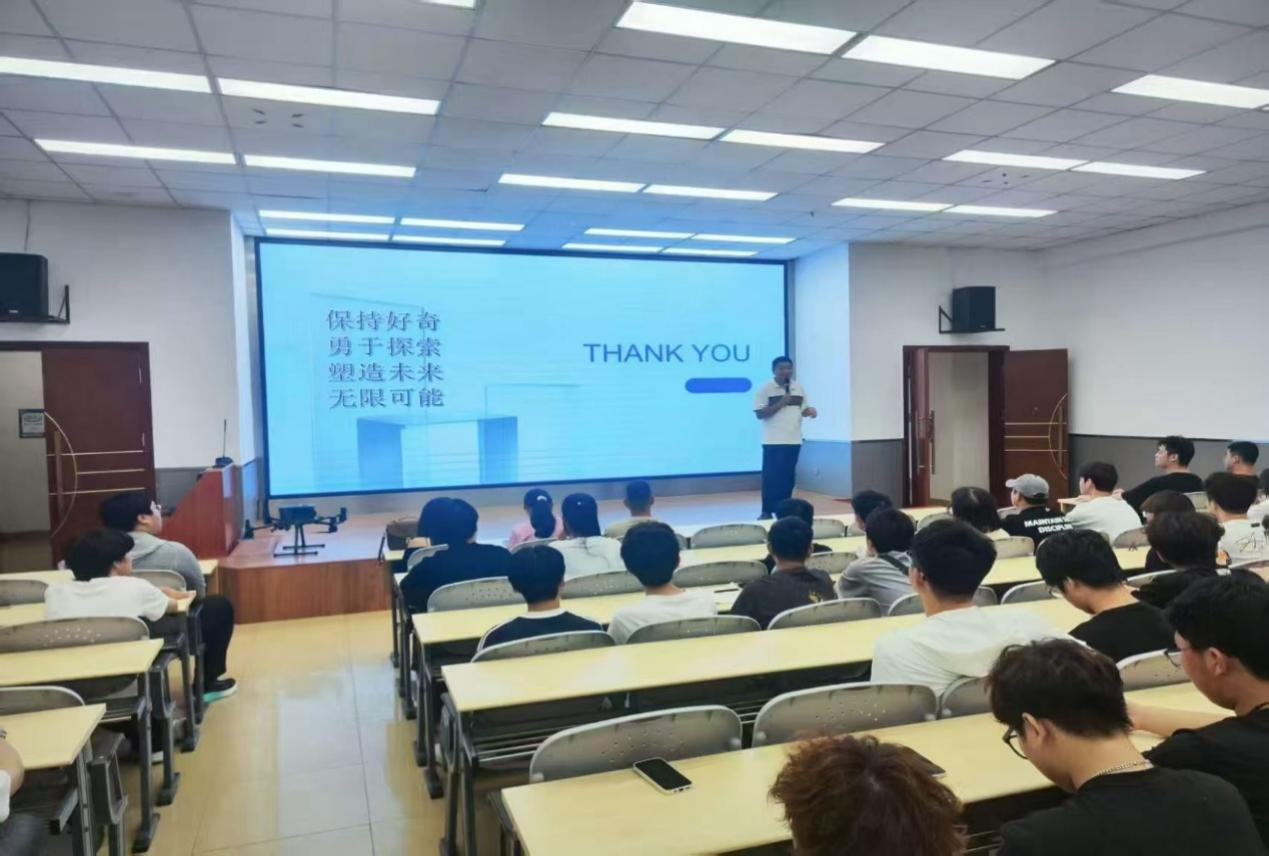 机器人工程专业的入学教育由丁永鹏负责。丁永鹏从机器人的分类和丰富多样的应用案例入手,生动形象地介绍了该专业的研究内容,让新生们对机器人领域有了初步的感性认识。接着,他详细解读了课程设置,强调了多学科知识融合在该专业学习中的重要性,鼓励新生们拓宽知识面,培养跨学科思维。