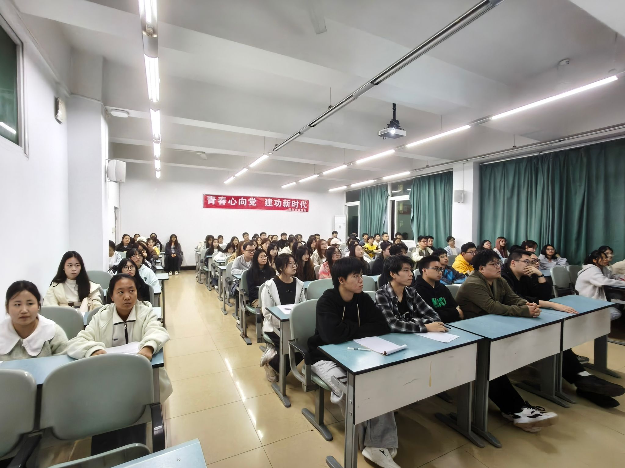 为深入学习贯彻党的精神,引导青年学子从红色故事中汲取信仰力量,10月23日,智能科技学院在1405与1406教室开展“青春心向党,建功新时代”红色观影及观后感征集活动。此次活动由学院团总支、学生会主办,团总支宣传部承办,学院共计181名同学参与。