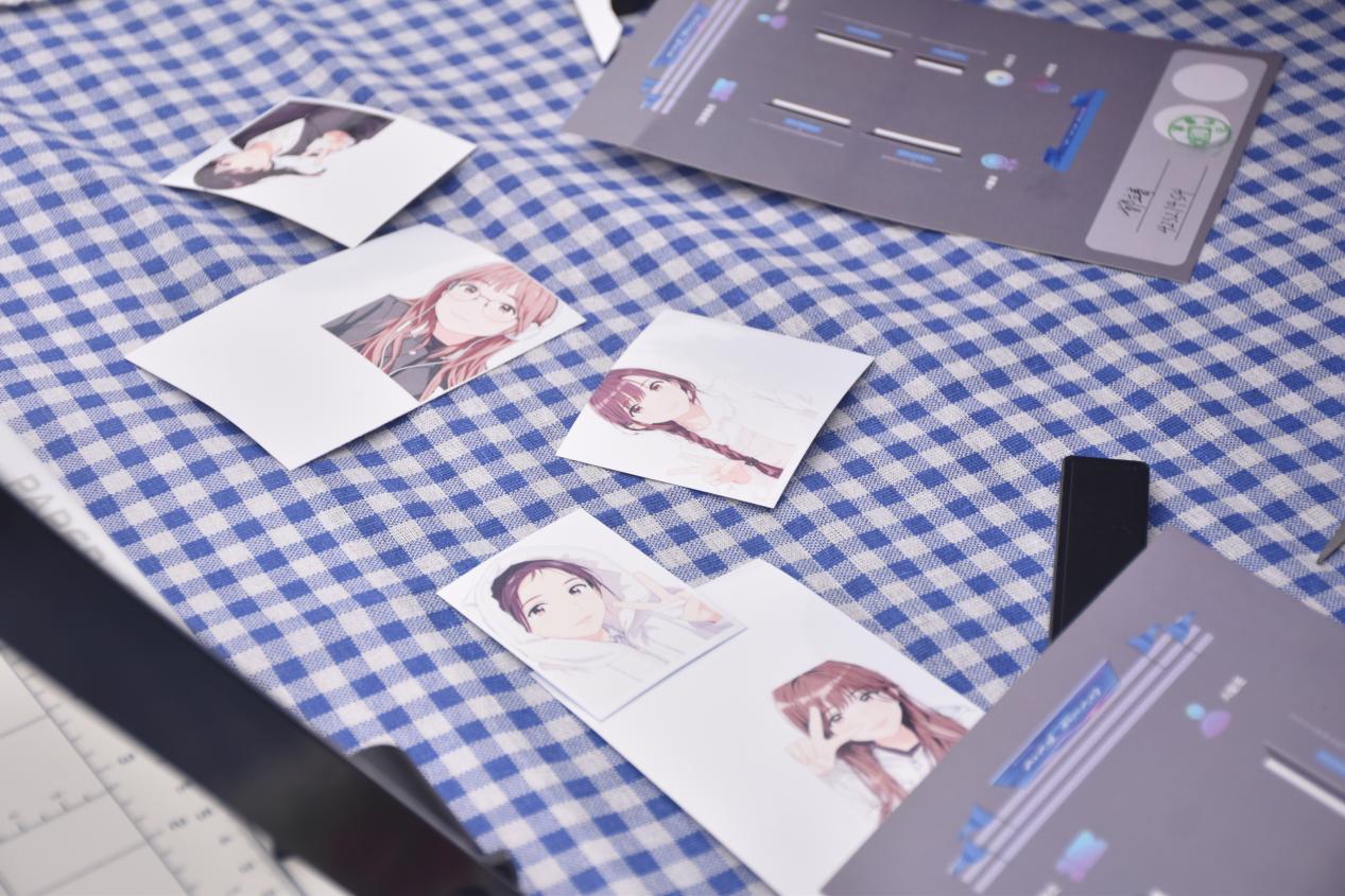 活动伊始,参与者们需在活动指定主题板处拍摄自己的照片,留下神采奕奕的影像,这不仅仅是简单的拍照,更是创造个人数字化素材的第一步。随后,照片被上传至收集表,核心的“魔法”环节随之展开——由参与者利用AI风格转换软件,将同学们的照片瞬间转化为独具特色的动漫风、手绘风等艺术贴纸。当一张张充满个性风格的专属贴纸从打印机中诞生,活动进入了亲手创作的环节。同学们细心裁剪,亲手将自己的人物贴纸从纸页上“解放”出来。这份由自己肖像演变而来的创意成果,成为了他们参与下一环节的“通行证”。