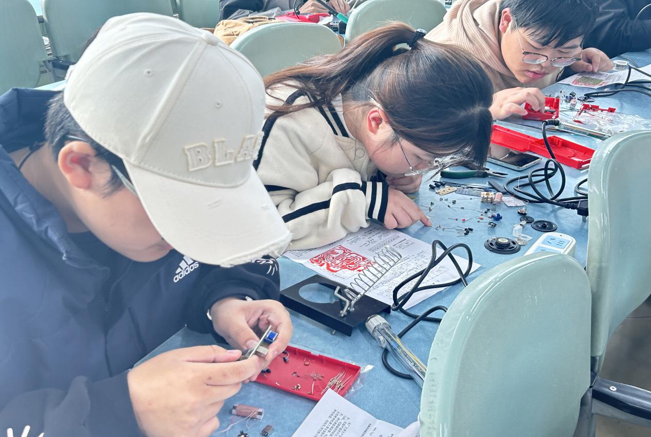 11月28日,决赛在101教室正式举行。本次决赛以焊接收音机为具体任务,重点考核选手的实操能力,难度较初赛有显著提升。比赛内容涵盖识别元器件、电路图解读、电路板焊接、功能实现、作品完成度及元器件安装六大板块,旨在结合理论与实操对选手进行全方位专业评估。
