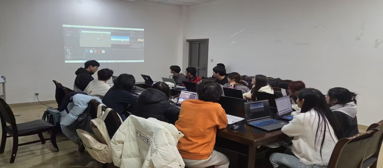 分享会最后,主讲人组织成员针对实操中遇到的问题进行交流探讨,围绕“语法调用错误”“刚体属性适配不当”等共性问题梳理解决办法。大家在交流中解决了实操难题,加深了对Unity基础开发的理解,以及代码应用与游戏设计的结合能力,为后续3D游戏开发学习打下坚实基础。