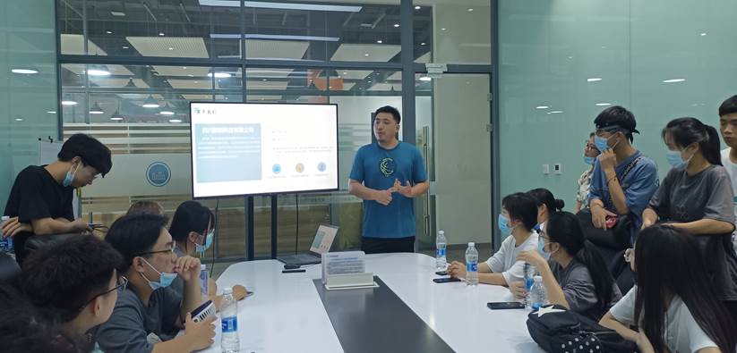 成都新经济活力区工作人员向师生一行做讲解