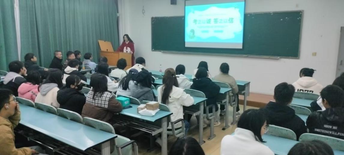 为了加强校园诚信文化建设,提高学生的诚信意识,12月3日在1303、1304、1401教室,智能科技学院2023级本计科03-05班开展了以“诚信考试,从我做起”为主题的班会。此次班会由辅导员赵丽蓉和各班长主讲,班级全体同学参加。