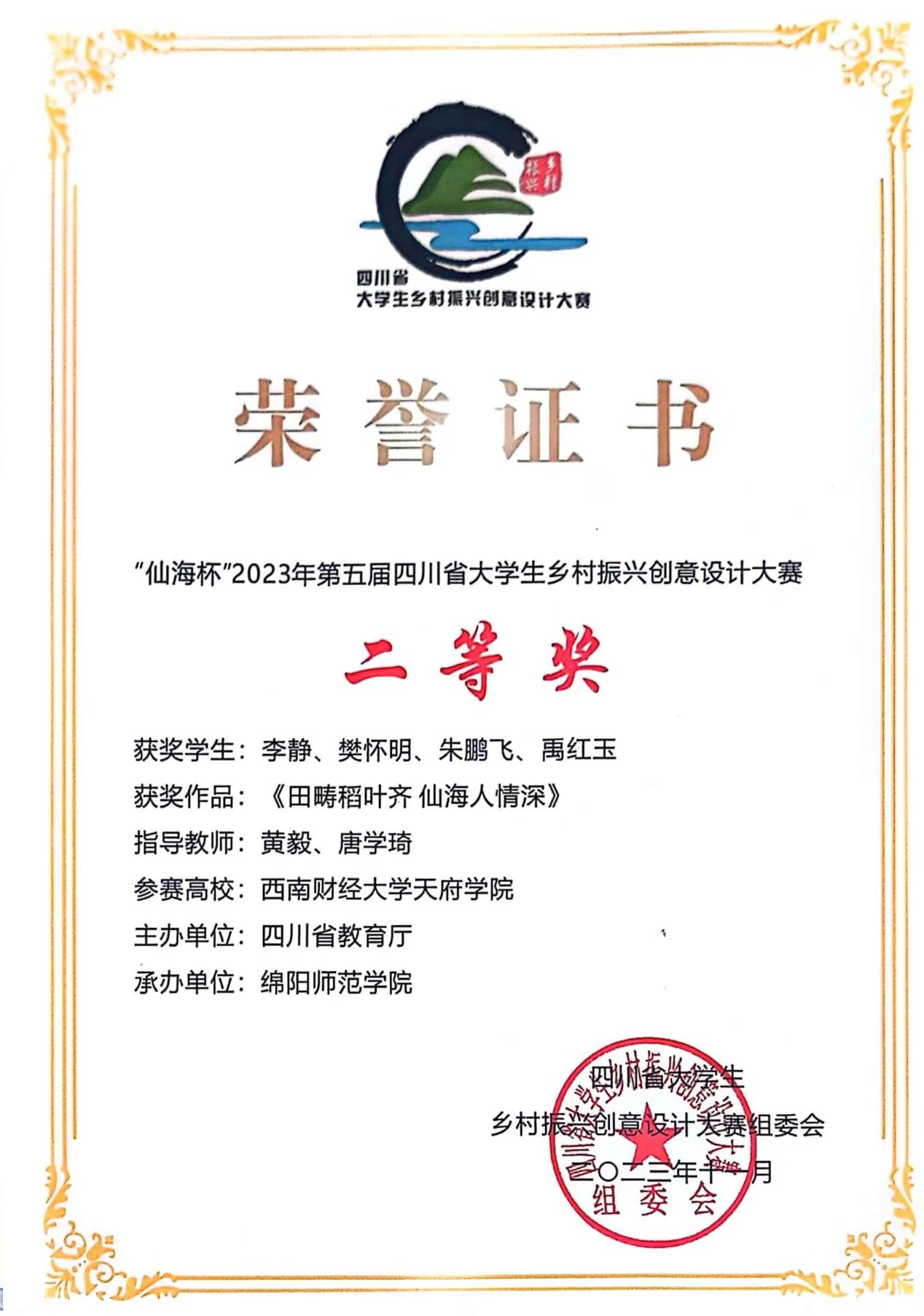 她勇于创新、不断探索,敢于挑战不同比赛。目前已经荣获八届全国应用型人才综合技能大赛国家级三等奖、四川省大学生乡村振兴创意设计大赛省级二等奖、四川省大学生农业创意设计大赛省级三等奖等比赛奖项。