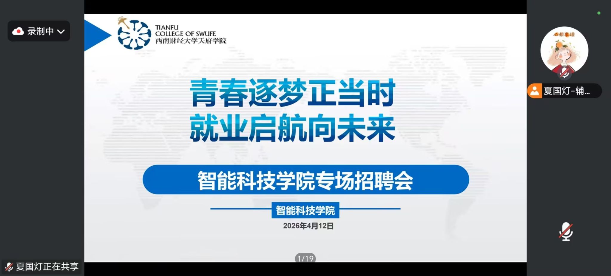 为切实做好2026届毕业生就业服务工作,帮助毕业生明晰就业方向、提升求职技能、抢抓就业机遇,平稳实现从校园到职场的过渡,4月12日,智能科技学院线上开展“青春逐梦正当时,就业启航向未来”专场招聘会暨2026届毕业生年级主题班会。此次会议由学院辅导员夏国灯主持,学院分党委书记常荣、副院长陈小宁、院长助理郭进、企业代表、毕业班辅导员及全体2026届毕业生参加。