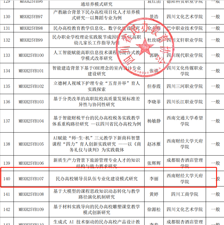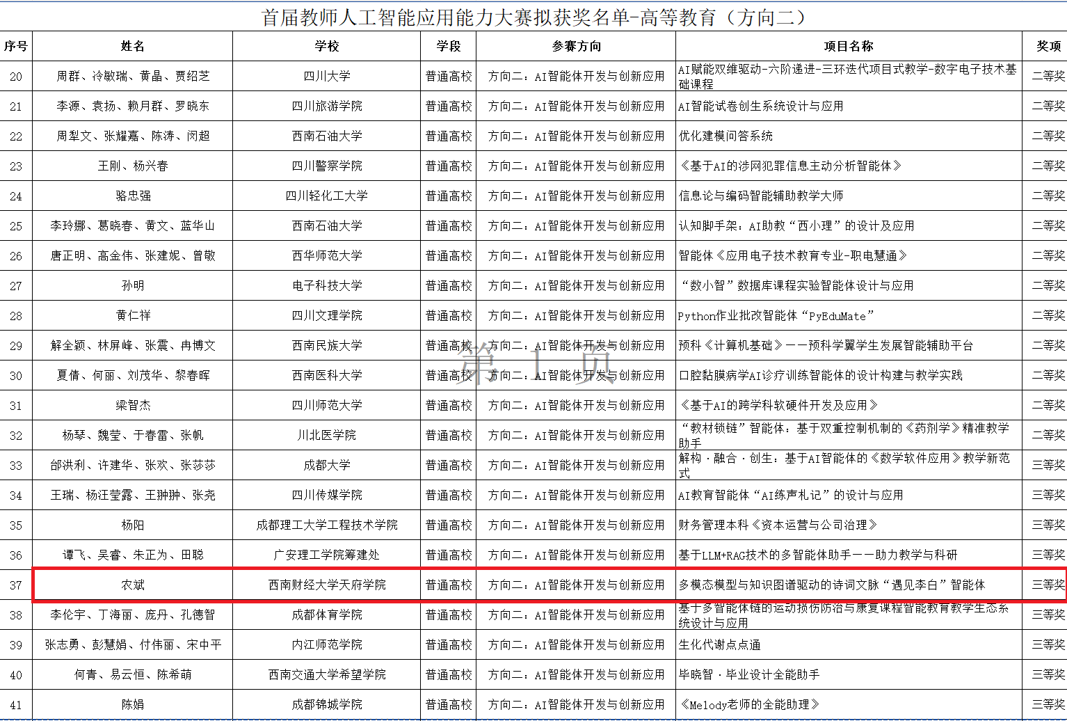 近日,绵阳市社会科学界联合会公布了2025年度市级社会科学研究规划项目立项名单。西南财经大学天府学院智能科技学院教师谢欣岑、丁永鹏、盛晓春、陈小宁凭借优秀的科研能力和创新思维,分别获批立项。此次立项体现了学院在社会科学研究领域的深厚实力与积极探索。具体立项公示名单如下表:项目编号项目名称成果形式项目负责人所在单位项目类别MY2025YB018数字技术赋能绵阳乡村非遗保护与传承研究论文谢欣岑西南财经大学天府学院一般项目MY2025YB125绵阳市人工智能产业助力加快建成省域经济副中心的路径研究论文丁永鹏西南财经大学天府学院一般项目MY2025ZC019绵阳市垃圾分类治理效能提升路径研究研究报告盛晓春西南财经大学天府学院自筹经费项目MY2025ZC037科技创新赋能蜀道文化保护传承与城乡融合发展研究论文陈小宁西南财经大学天府学院自筹经费项目在当前社会对高等教育质量和创新能力要求不断提升的背景下,...