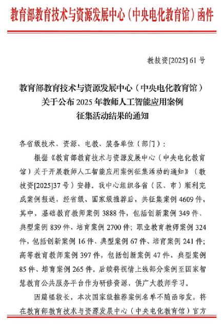 喜报|学院教师黄毅团队案例入选教育部2025年教师人工智能应用培育案例