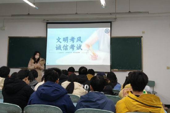 为营造公平公正的考试环境,加强考风考纪建设,引导学生诚信应考,12月28日在1406教室,2025级本计科01班、信管01班和2024级软件技术01-03班联合开展考试诚信教育主题班会。此次班会由辅导员黄彩霞主讲,班级全体同学参加。班会现场班会重点围绕考试纪律规范与违规处理展开。首先对《学生手册》相关条例进行解读,明确了考试违规行为的认定标准:携带规定外物品入场、未在指定座位考试、旁窥或交流等属于违纪行为;携带资料、使用通讯设备、...
